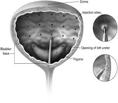 RESULTS: A total of six women and five men were treated. Analysis of the King's Health Questionnaire showed a significant improvement in eight of the nine domain scores at 8 weeks from baseline. On cystometric studies, the mean maximum cystometric capacity increased significantly in all patients at 8 weeks from baseline (P < 0.001). Bladder compliance also increased significantly (P < 0.001). The number of urinary incontinence episodes per day improved significantly from baseline after injection (4 weeks, P < 0.001; 8 weeks, P < 0.001; 12 weeks, P < 0.001). Lack of efficacy appeared 7.15 ± 3.4 months after treatment.